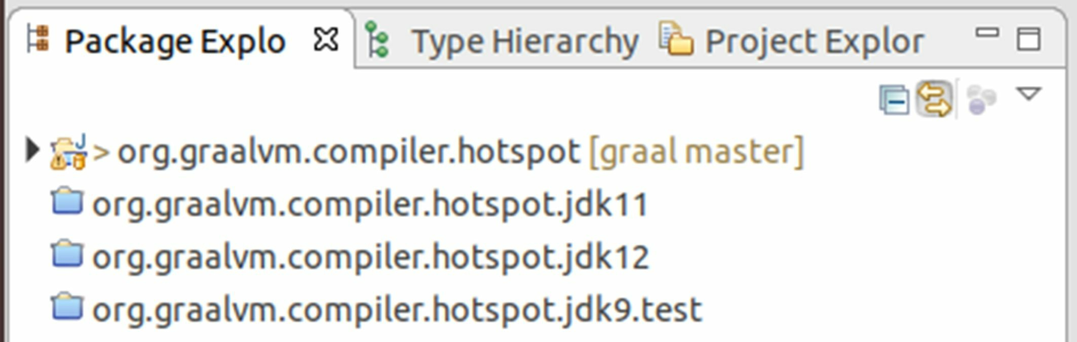 我们在Eclipse中找到JVMCICompiler接口,通过继承关系分析,可以清楚地看到有一个实现类HotSpotGraalCompiler实现了JVMCI,如图11-12所示,这个就是我们要分析的代码的入口。