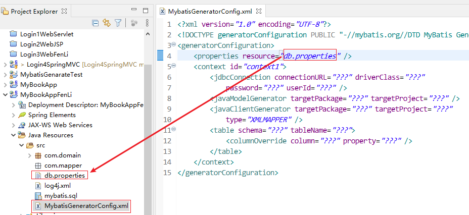 1 2 3 4 <generatorConfiguration > <properties resource ="db.properties" /> ... </generatorConfiguration >